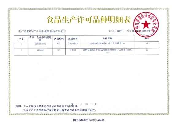 生產(chǎn)許可,明細